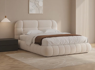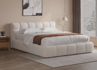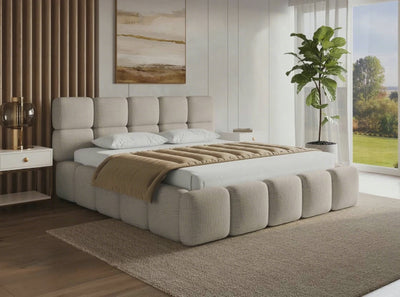 Doppelbett aus ecrufarbenem Bouclé-Stoff 180x200 cm YOURI