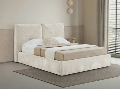 GEORGINA Doppelbett aus beigefarbenem Samt 140x190 cm