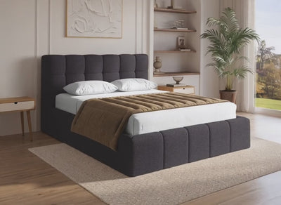 SARA Doppelbett aus dickem grauem Cord 140x190cm