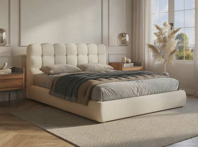 Doppelbett aus ecrufarbenem Bouclé-Stoff 140x190 cm GEORGINA Doppelbett aus ecrufarbenem Bouclé-Stoff 140x190 cm GEORGINA