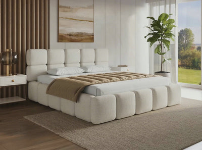 LEVY Doppelbett aus dickem, beigefarbenem Cord 140x190cm