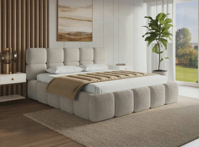 BUBBLE Bett mit Stauraum, beige melierter Samt, 140 x 190 cm