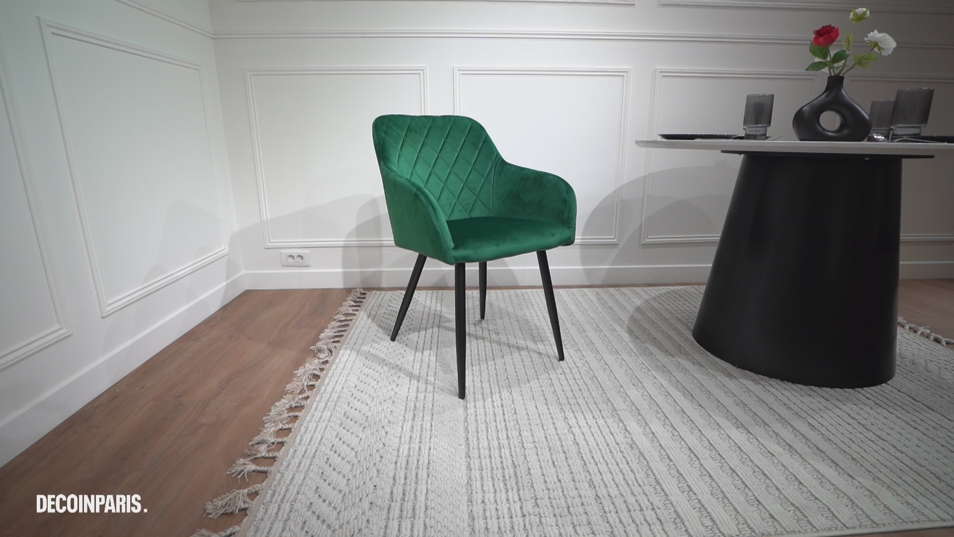 Que diriez-vous d’opter pour le lot de 2 chaises avec accoudoirs en velours vert KANA ?