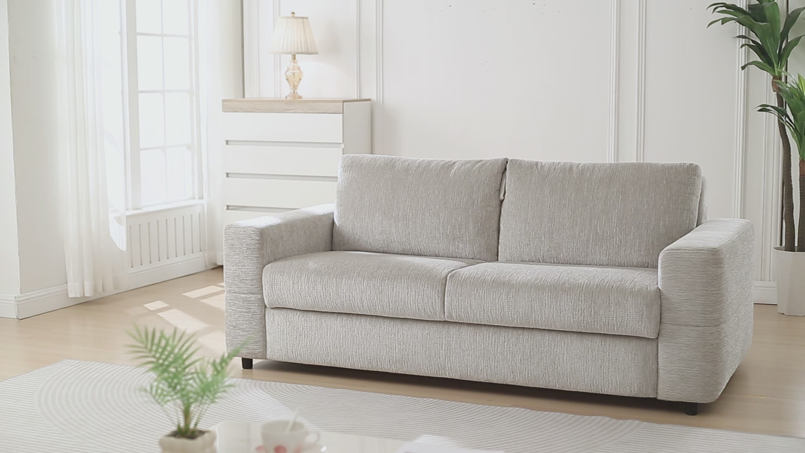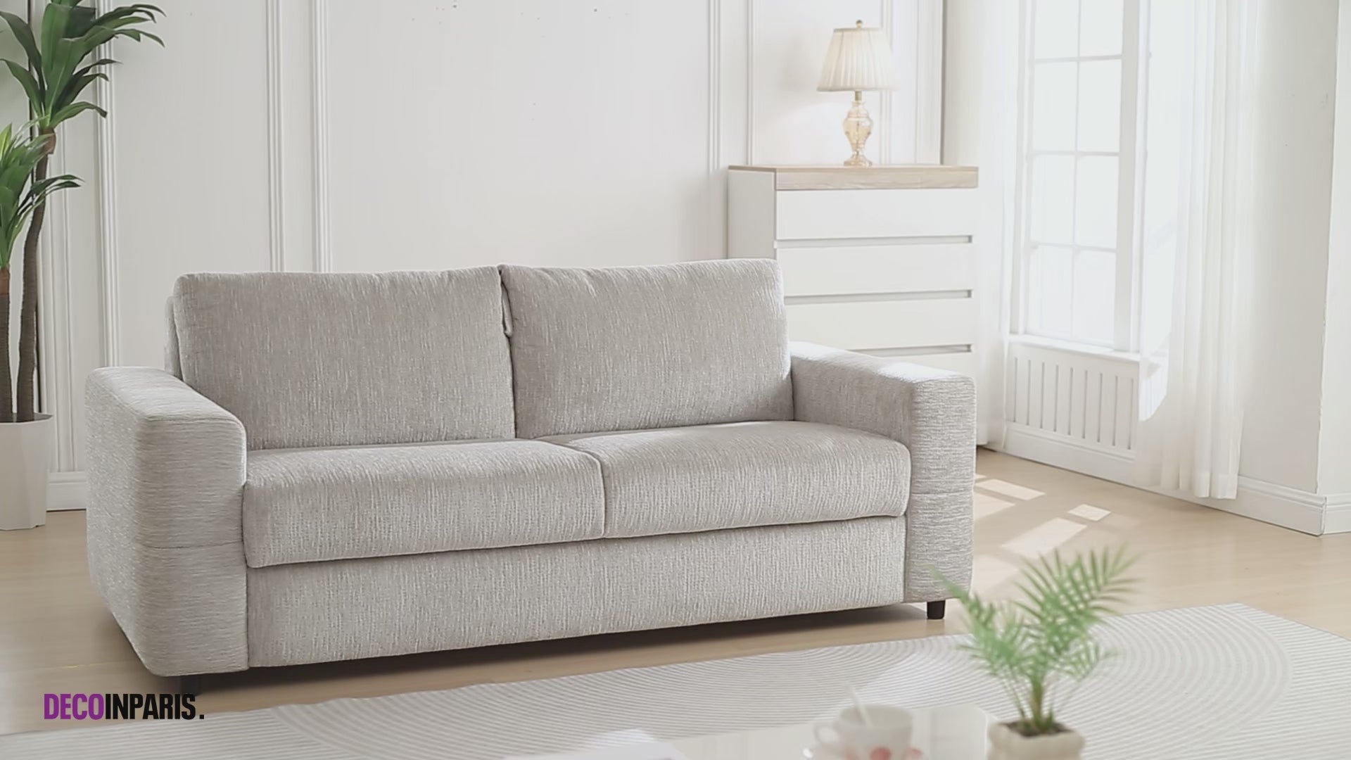 Dank des Express-Öffnungssystems „Rapido“ lässt sich AMAURY im Handumdrehen in ein Bett verwandeln, mühelos und ohne Entfernen der Kissen. Die integrierte 12 cm dicke Matratze sorgt für ein bequemes Bett für den täglichen oder gelegentlichen Gebrauch.
