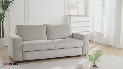 AMAURY 3-Sitzer Express-Schlafsofa in beigefarbenem, meliertem Samt