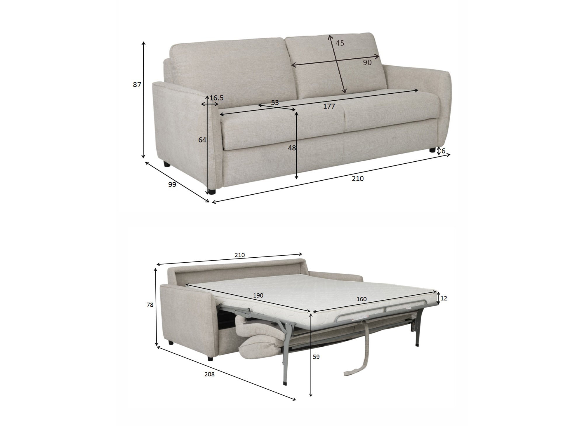 CHIARA wurde für multifunktionale Räume entwickelt und verfügt über ein Express-Öffnungssystem, mit dem es sich in wenigen Sekunden in ein Bett verwandeln lässt, ohne die Kissen entfernen zu müssen. Die 12 cm dicke Matratze bietet echten Schlafkomfort für zwei Personen, egal ob für eine Nacht oder für den täglichen Gebrauch.