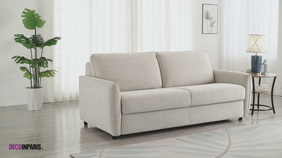 CHIARA 3-Sitzer-Express-Schlafsofa in beigefarbenem, strukturiertem Samt