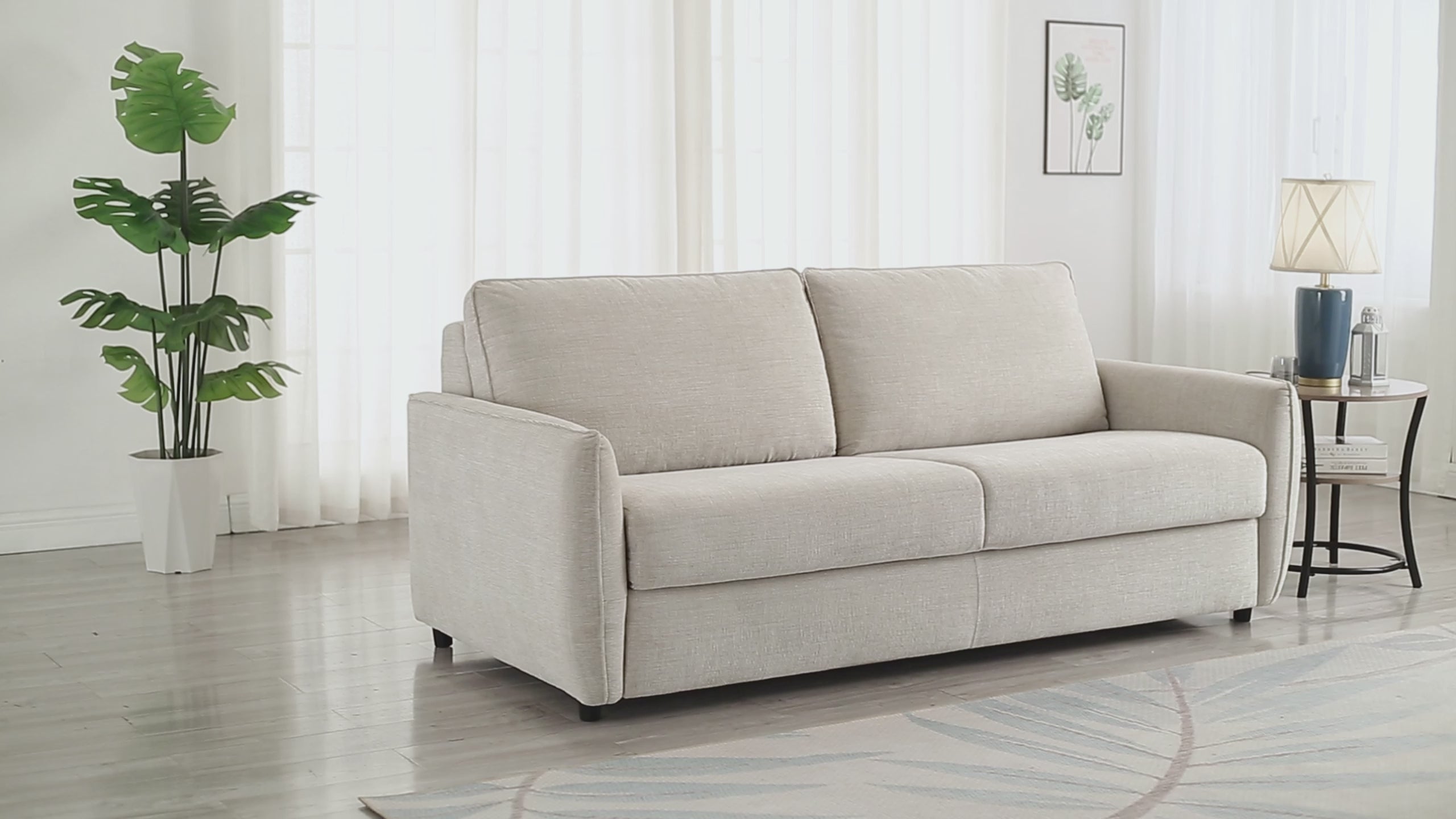 CHIARA 3-Sitzer-Schlafsofa aus strukturiertem beigefarbenem Samt