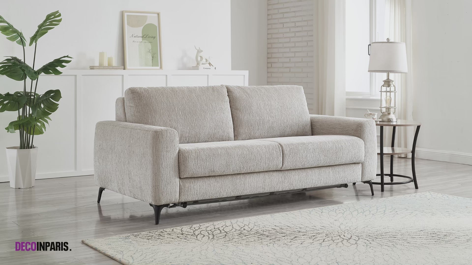 Dank des Express-Öffnungssystems „Rapido“ verwandeln Sie Ihr Wohnzimmer in Sekundenschnelle in einen Schlafbereich. Der Mechanismus ermöglicht ein schnelles und einfaches Öffnen, ohne dass Sitz- oder Rückenkissen entfernt werden müssen. Die 12 cm dicke Matratze bietet optimalen Komfort für zwei Personen oder gelegentliches Schlafen.
