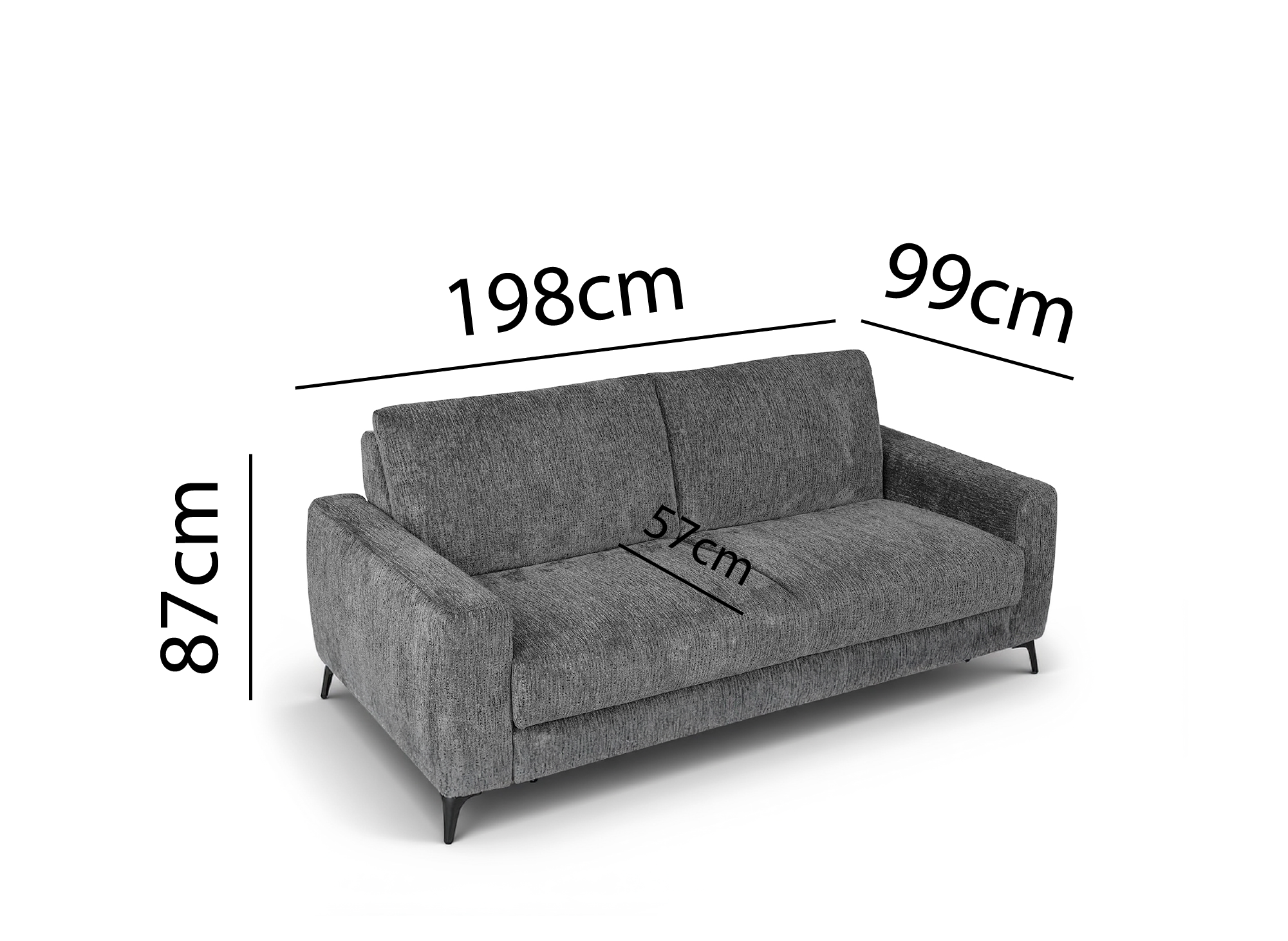 Das Schlafsofa NONA ist der perfekte Verbündete, um moderne Eleganz mit alltäglicher Funktionalität zu verbinden. Sein schlichtes Design mit seinen weichen Linien und den hohen schwarzen Metallbeinen verleiht Ihrem Zuhause einen luftigen, modernen Touch.