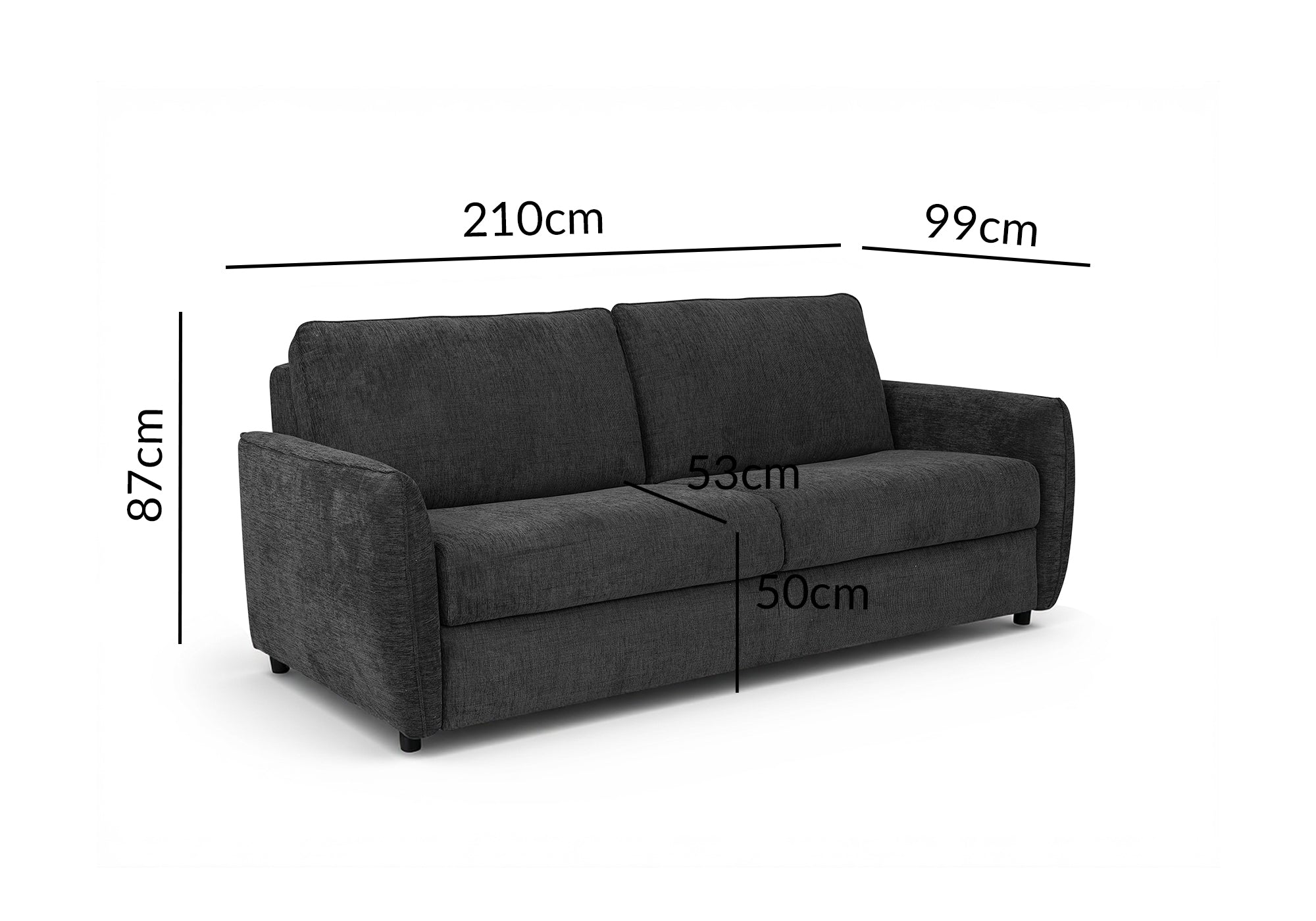 CHIARA 3-Sitzer-Express-Schlafsofa in dunkelgrauem, strukturiertem Samt