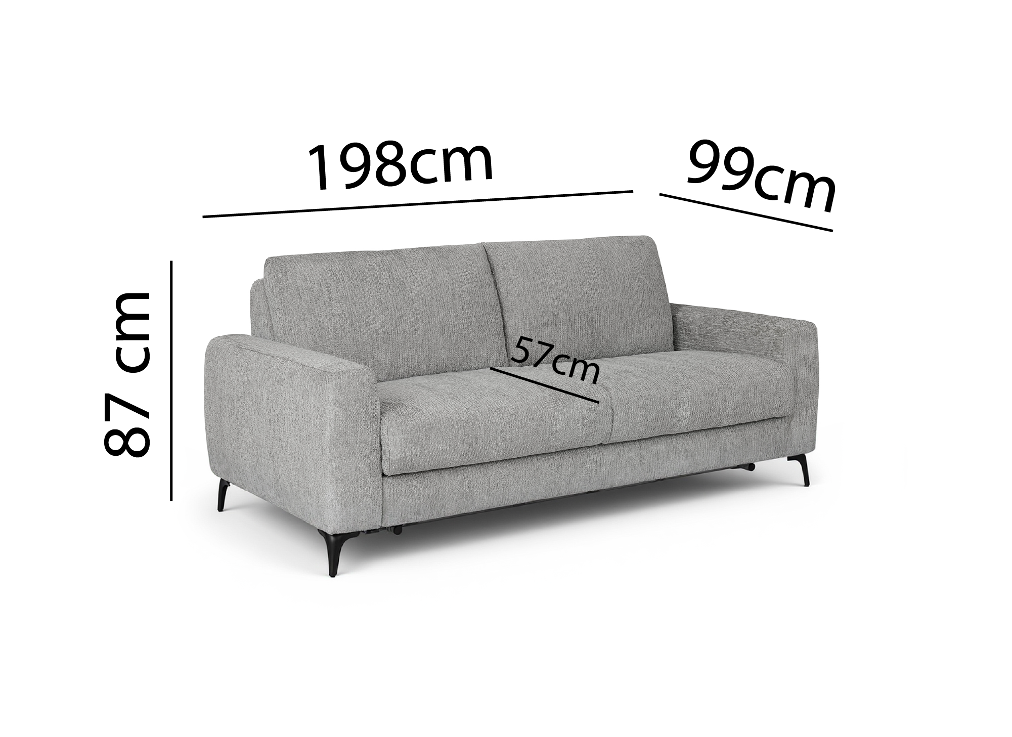 Das Schlafsofa NONA ist der perfekte Verbündete, um moderne Eleganz mit alltäglicher Funktionalität zu verbinden. Sein schlichtes Design mit seinen weichen Linien und den hohen schwarzen Metallbeinen verleiht Ihrem Zuhause einen luftigen, modernen Touch.