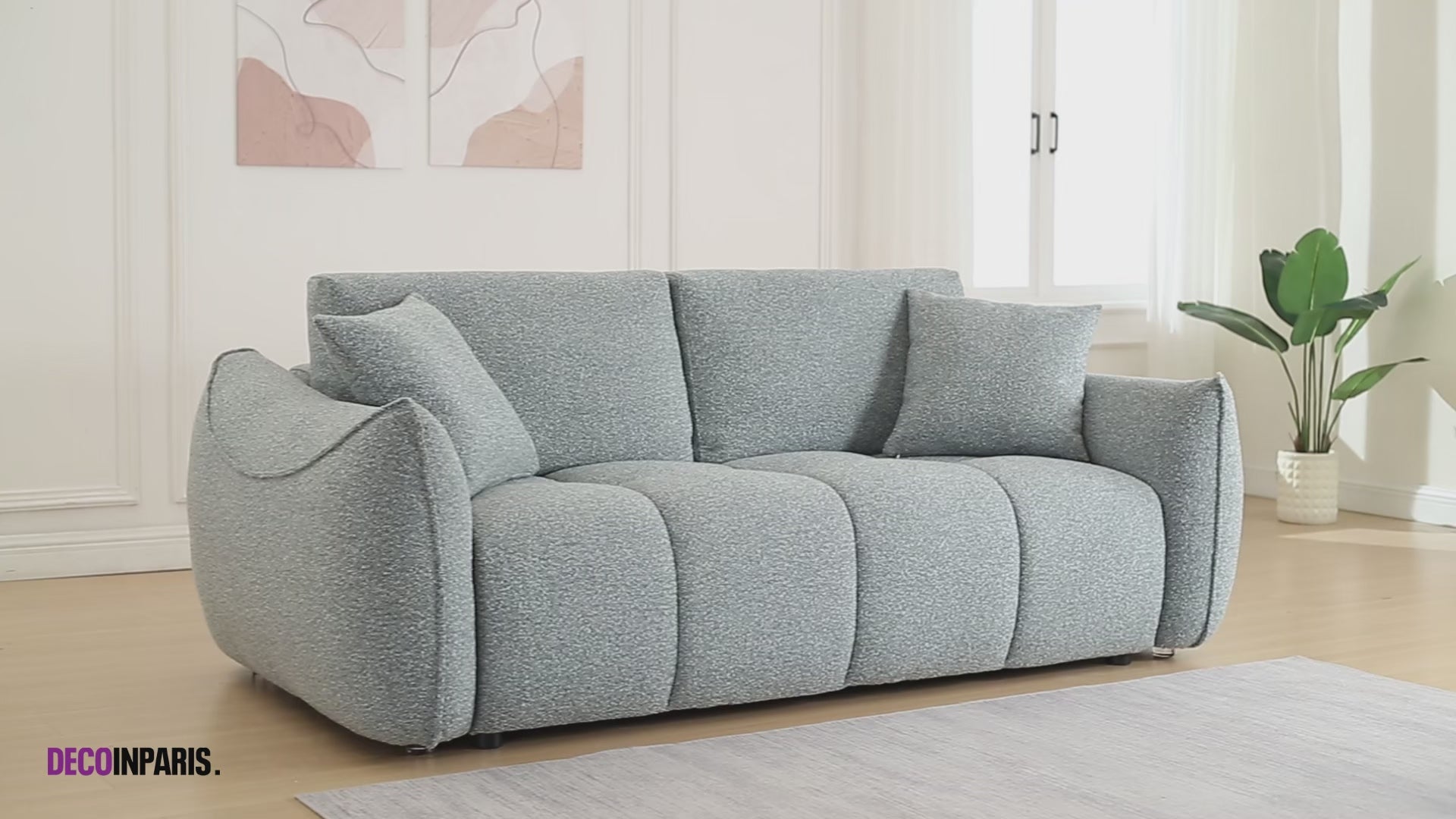 Das gerade Sofa EZRA aus wassergrünem Bouclé-Stoff vereint Komfort und Eleganz und ist die perfekte Ergänzung für Ihr Wohnzimmer. Mit seinem schlichten, modernen Design verleiht dieses Sofa einen Hauch von Raffinesse und schafft gleichzeitig eine gemütliche, einladende Atmosphäre.