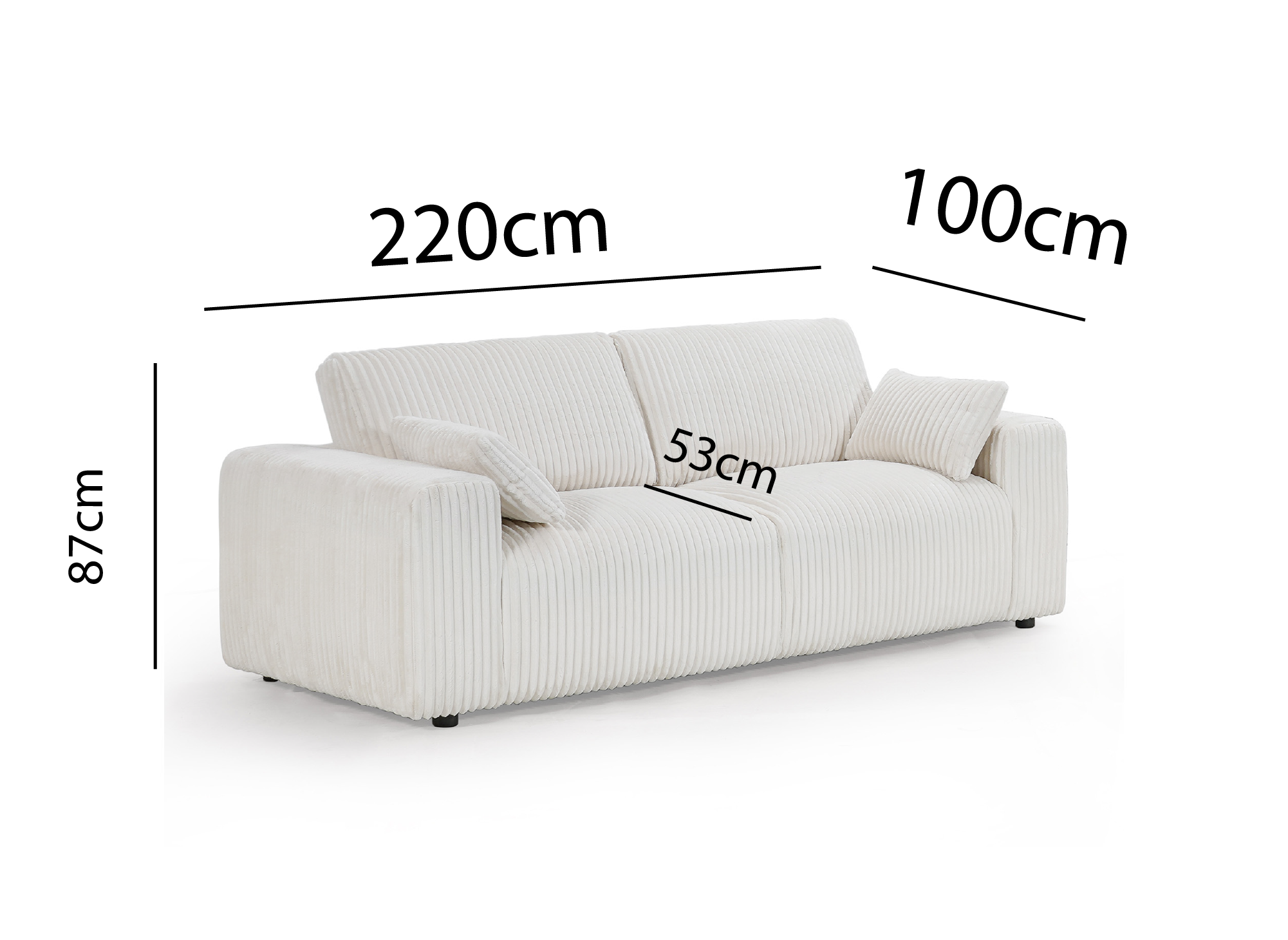 Mit breiten Armlehnen und großzügigen Kissen garantiert dieses 3-Sitzer-Sofa optimalen Komfort für Ihre entspannten Momente. Die Cordpolsterung ist nicht nur elegant, sondern auch langlebig und pflegeleicht. Die klaren Linien und die luxuriöse Optik dieses strukturierten Stoffes machen es zur perfekten Wahl für alle, die Stil und Komfort gleichermaßen suchen.