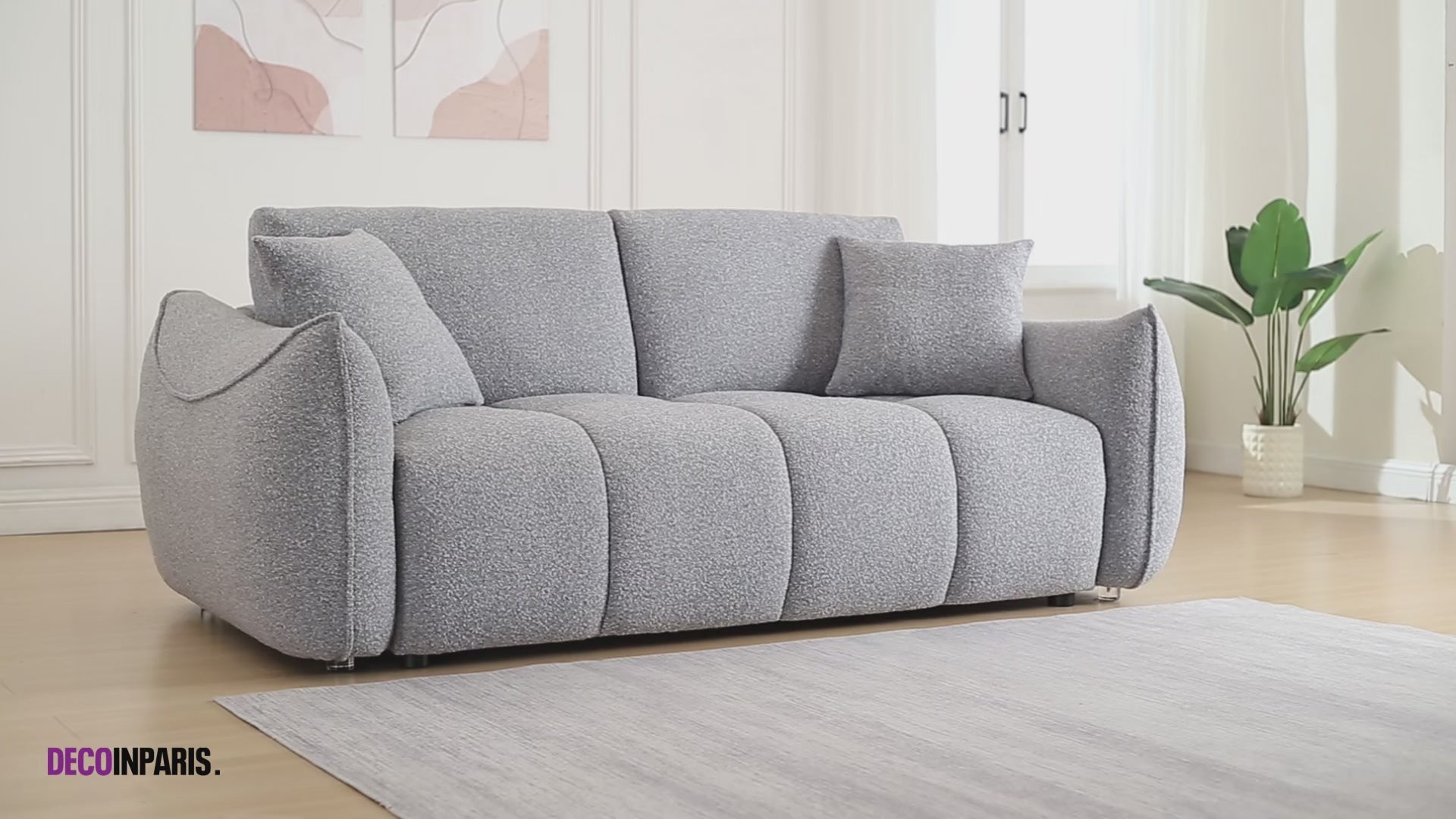 EZRA 3-Sitzer-Sofa mit festem Sitz in grauem Bouclé-Stoff
