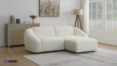 Das Bouclette-Sofa NYLA ist perfekt geeignet, um eine gemütliche und elegante Atmosphäre zu schaffen. Es vereint Ästhetik und Funktionalität und lässt sich leicht mit anderen Möbeln und dekorativen Accessoires kombinieren.