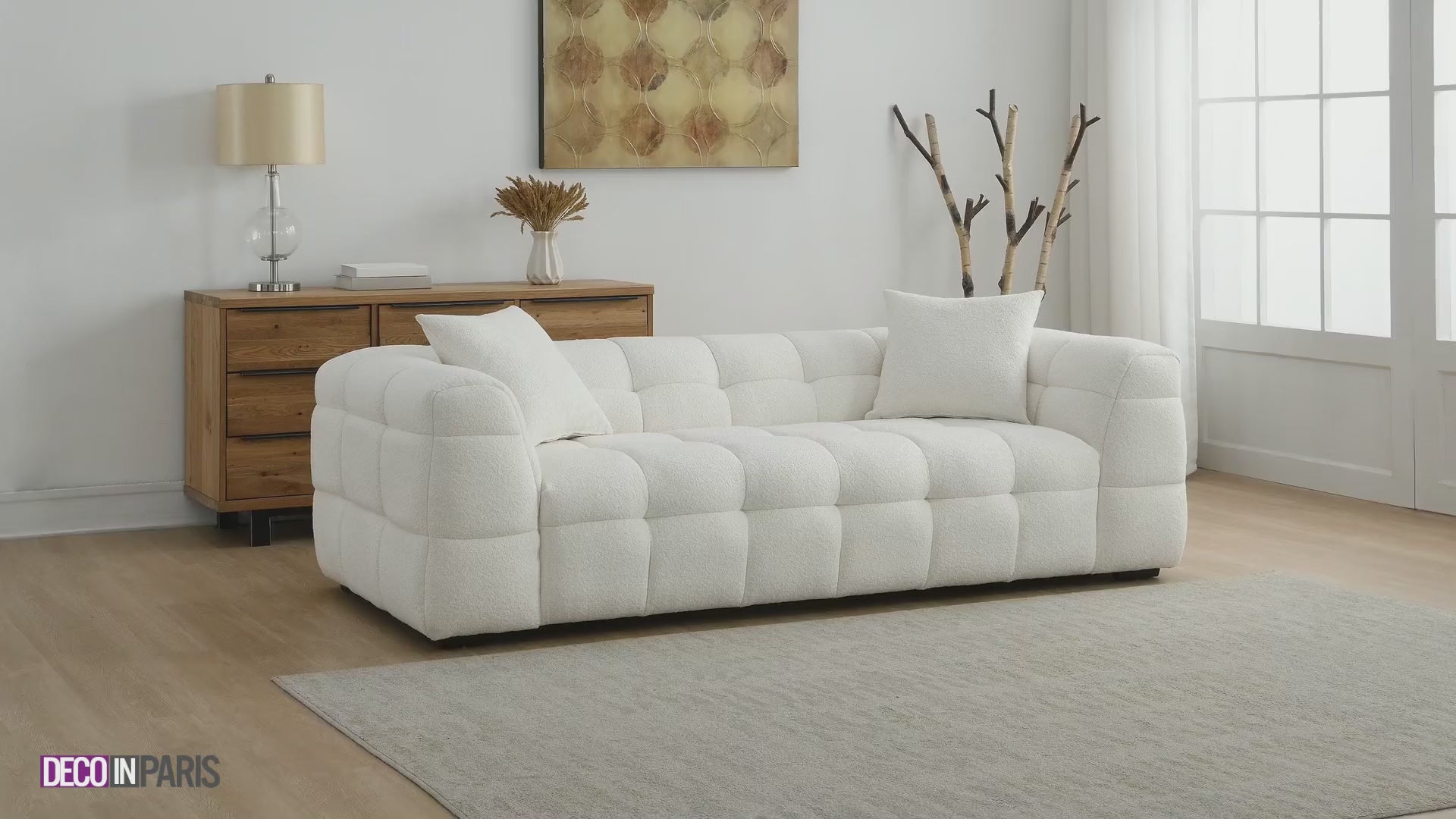 BELLA 3-Sitzer-Sofa mit festem Sitz in cremeweißer Schaffelloptik