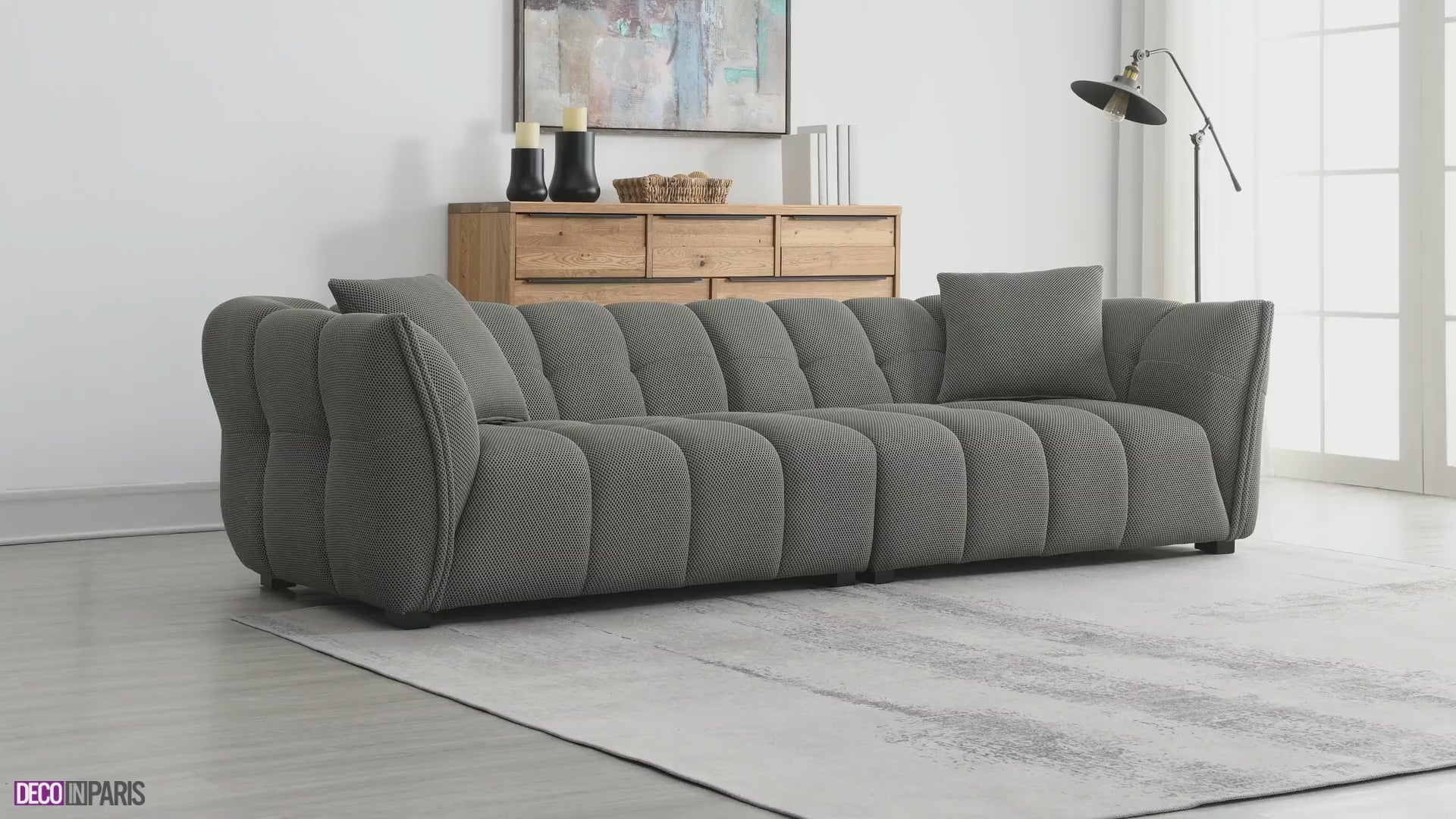 Lassen Sie sich von unserem 4-Sitzer-Sofa ELENA in grauem 3D-Stoff verführen!