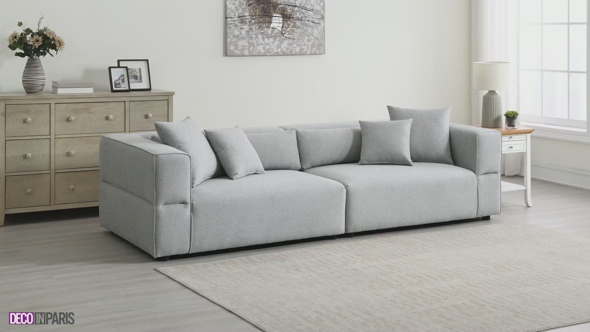 EVELYNE 4-Sitzer-Sofa mit festem Sitz in grauem Stoff