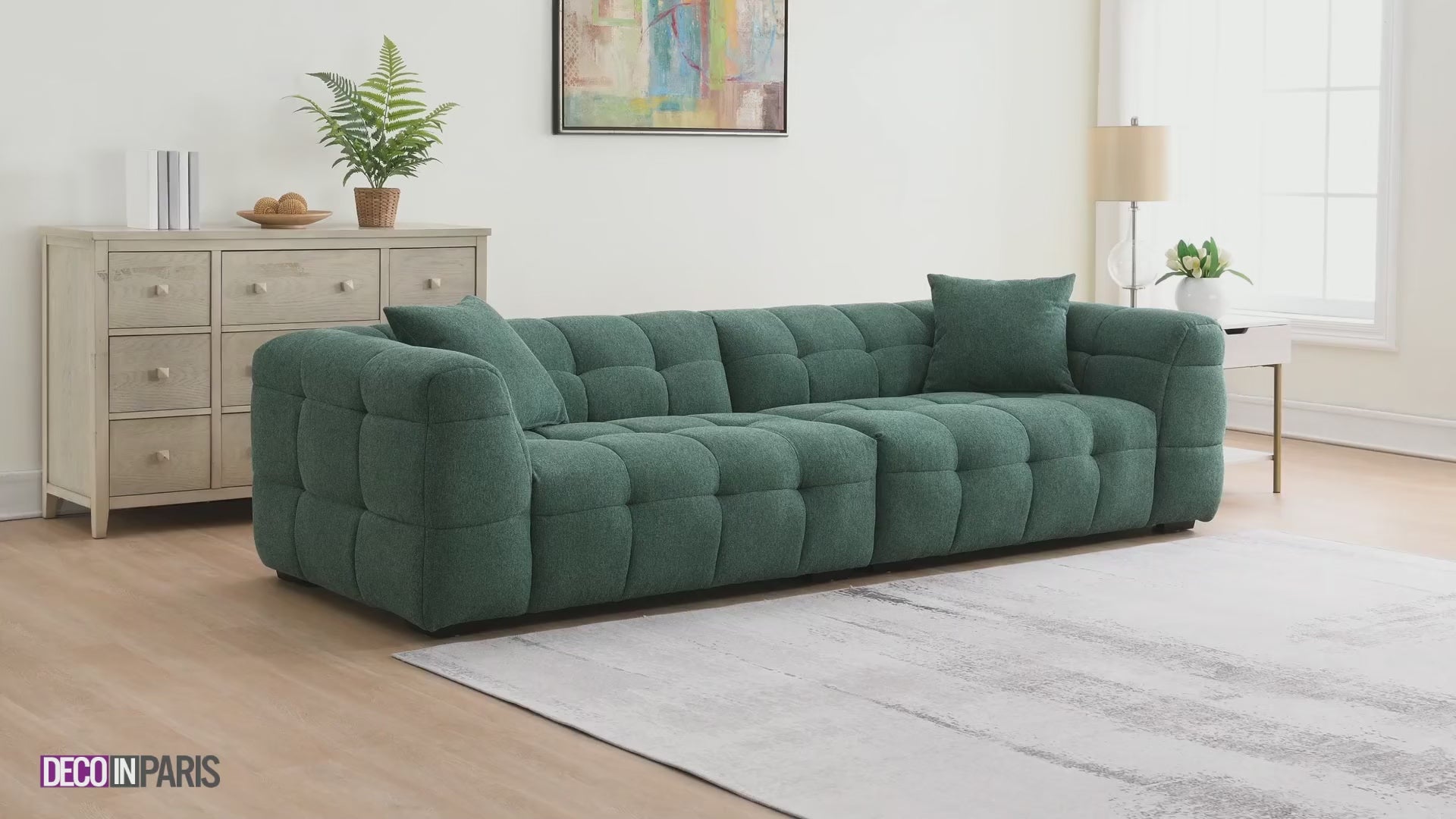 Unser 4-Sitzer-Designersofa BELLA in grünem Stoff wird zum Mittelpunkt Ihres Wohnzimmers. Sein schlichtes, modernes Design verleiht Ihrer Inneneinrichtung einen Hauch von Eleganz. Mit seinen abgerundeten Kurven und der gepflegten Verarbeitung passt dieses 3-Sitzer-Sofa perfekt zu jedem Einrichtungsstil, von klassisch bis modern.