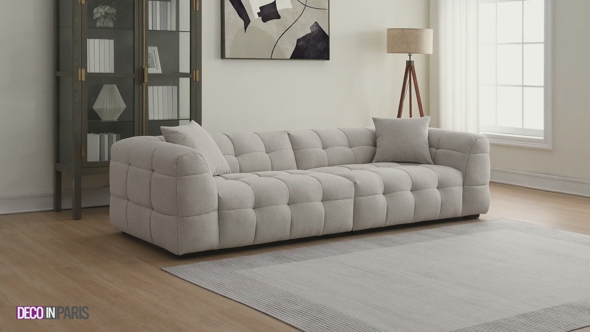 Unser 4-Sitzer-Designersofa BELLA in Taupe-Stoff wird zum Mittelpunkt Ihres Wohnzimmers. Sein schlichtes, modernes Design verleiht Ihrer Inneneinrichtung einen Hauch von Eleganz. Mit seinen abgerundeten Kurven und der gepflegten Verarbeitung fügt sich dieses 3-Sitzer-Sofa perfekt in jeden Einrichtungsstil ein, von klassisch bis modern.