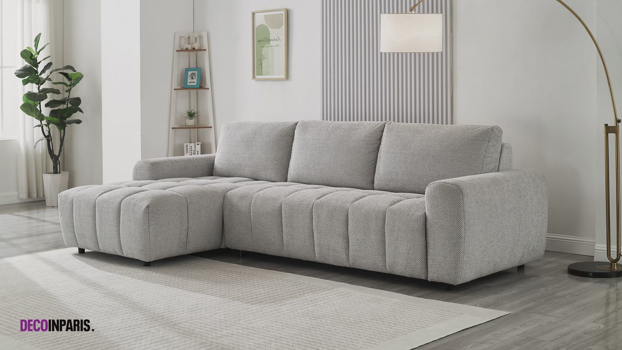 AGATHE Eckschlafsofa mit Expressöffnung in grauem Stoff - Linke Ecke