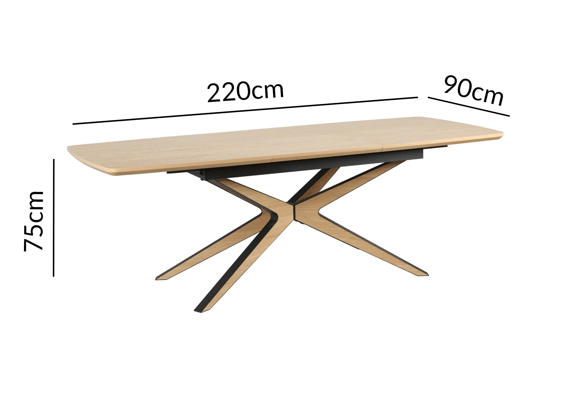 Die schlanken, grafischen schwarzen Beine bilden einen modernen Kontrast zur Holzoberfläche und unterstreichen den eleganten, zeitgenössischen Charakter. Die Kombination aus Holz und Metall sorgt für Stabilität und Raffinesse und macht den OXANE-Tisch zu einem Must-have für ein warmes Designer-Interieur.