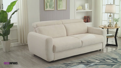 Dank des Schnellöffnungssystems „Rapido“ lässt sich das Sofa TOGO in wenigen Sekunden in ein echtes Bett verwandeln, ohne dass Sitz- oder Rückenkissen entfernt werden müssen. Die integrierte 12 cm dicke Matratze bietet optimale Unterstützung für erholsamen Schlaf im Alltag oder gelegentlich.
