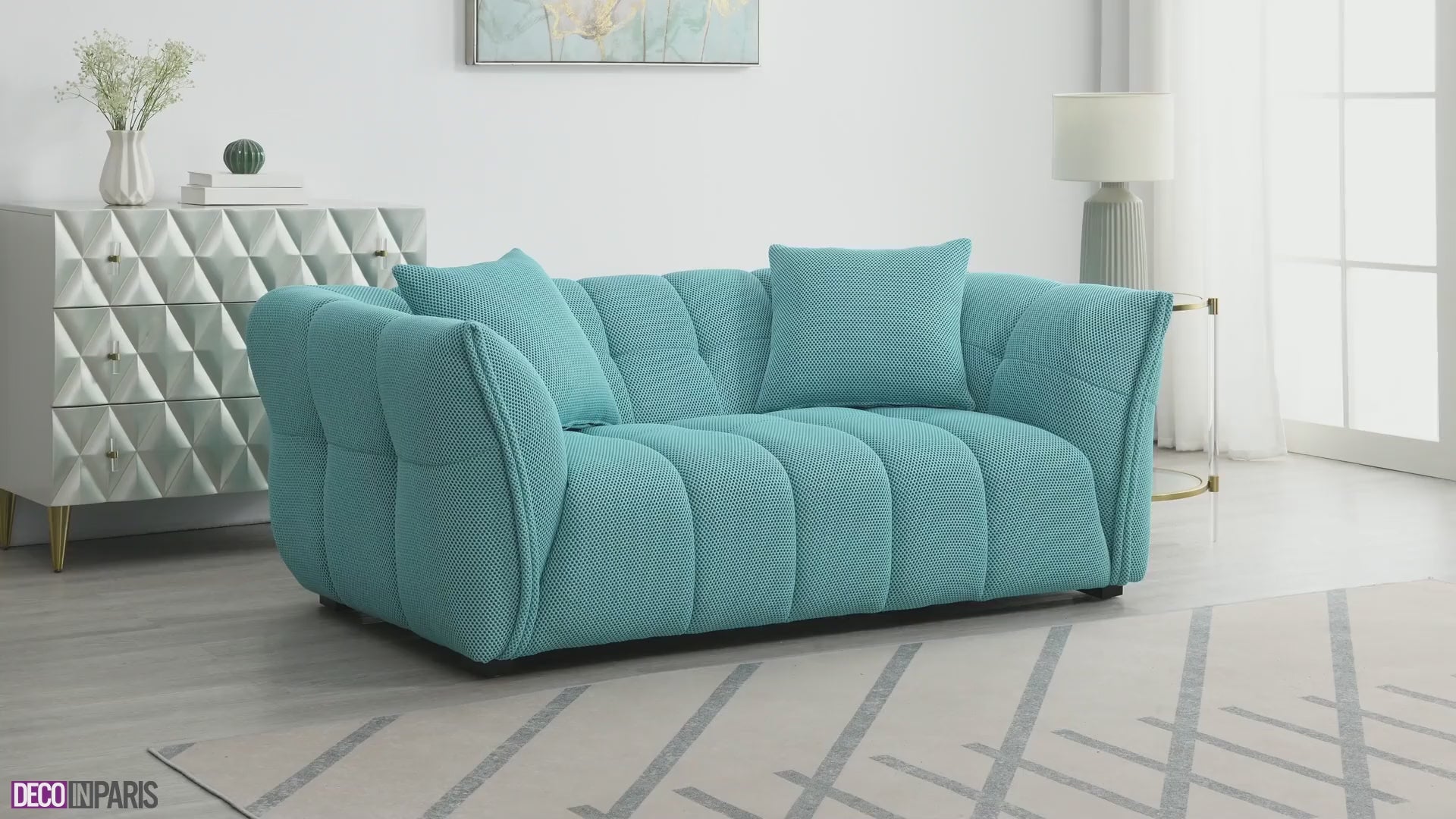 Lassen Sie sich von unserem 2-Sitzer-Sofa ELENA in 3D-Wassergrün-Stoff verführen!