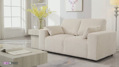 Mit breiten Armlehnen und großzügigen Kissen garantiert dieses 2-Sitzer-Sofa optimalen Komfort für Ihre entspannten Momente. Der Cordbezug ist nicht nur elegant, sondern auch langlebig und pflegeleicht. Die klaren Linien und die luxuriöse Optik dieses strukturierten Stoffes machen ihn zur perfekten Wahl für alle, die Stil und Komfort gleichermaßen suchen.
