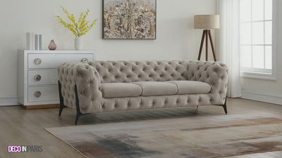 CARMEN 3-Sitzer gepolstertes Chesterfield-Sofa aus beigefarbenem Samt