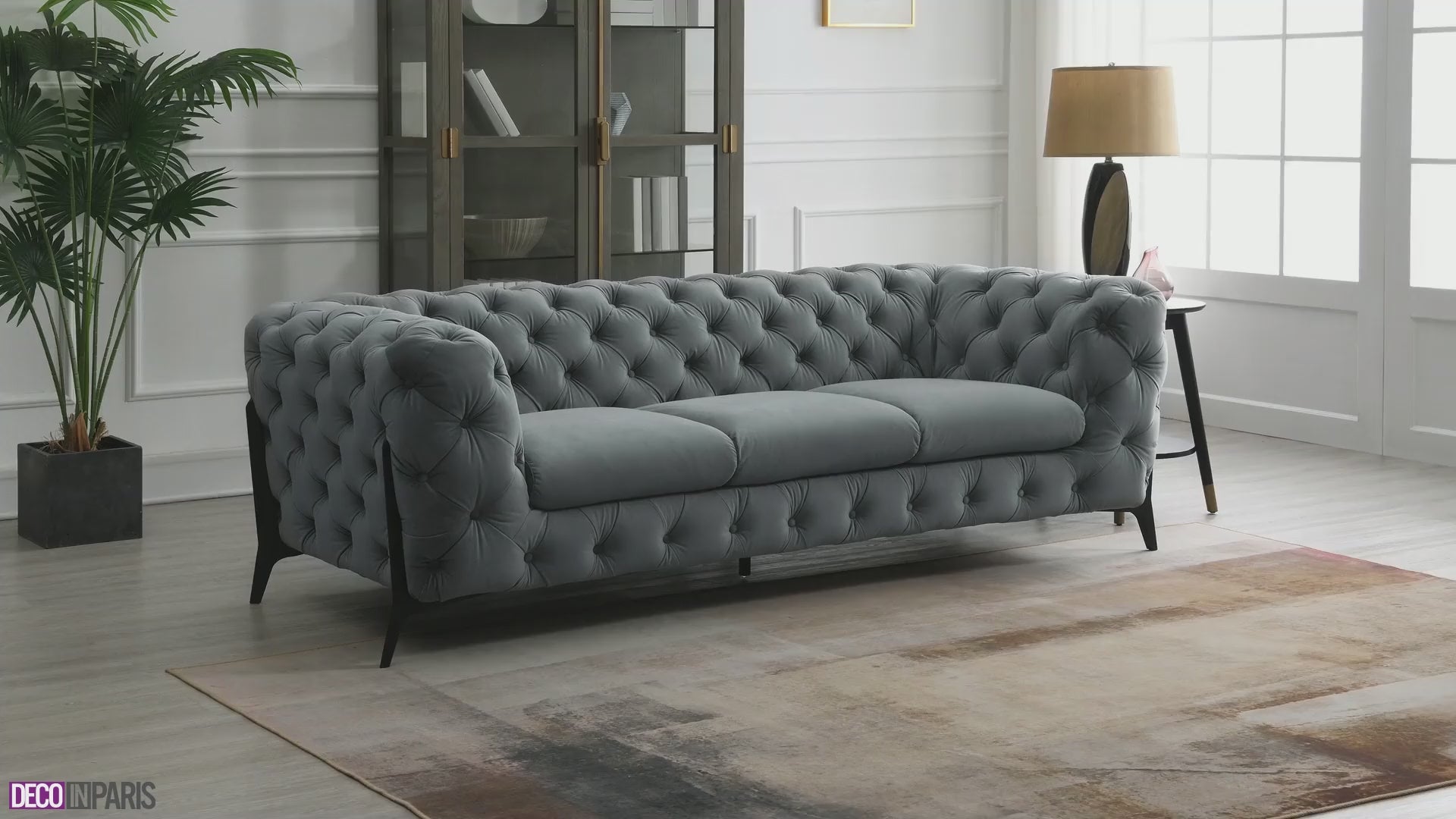 CARMEN 3-Sitzer-Chesterfield-Sofa mit Polsterung aus grauem Samt