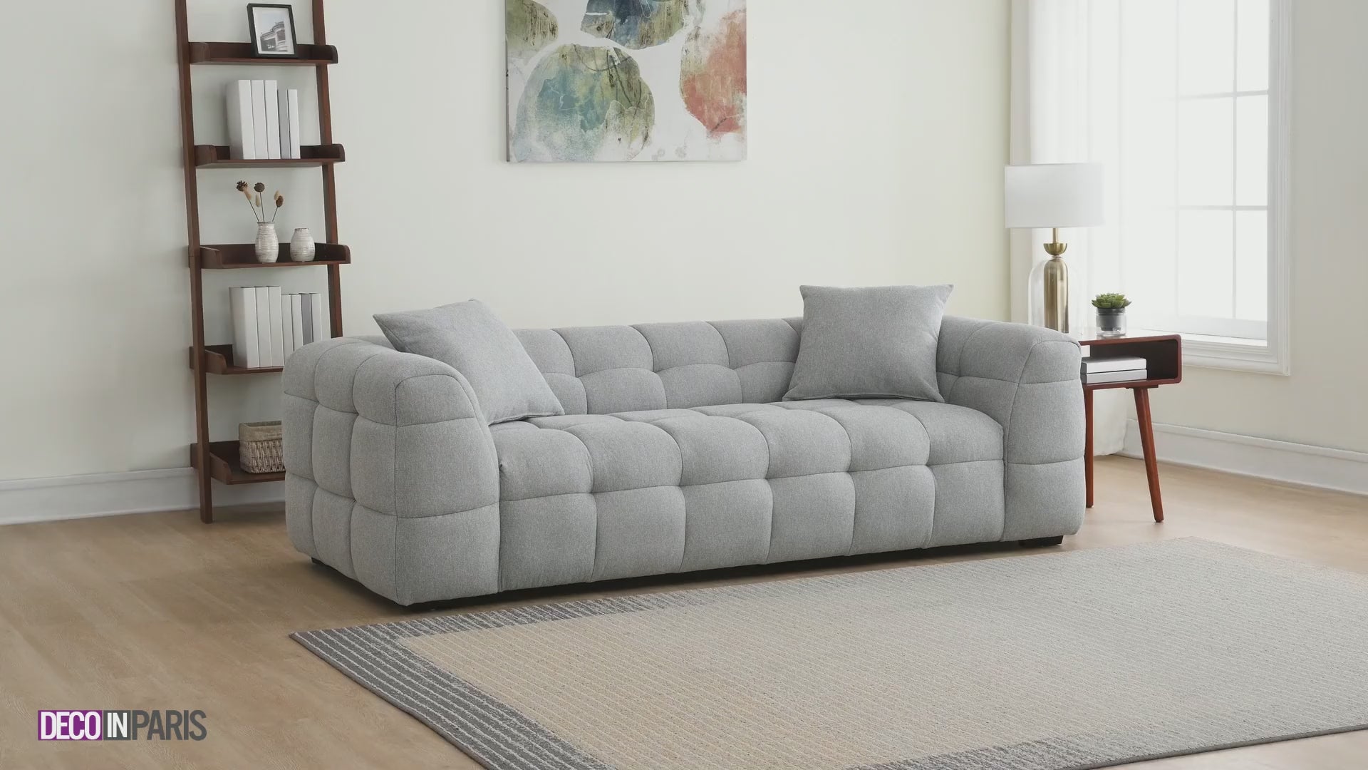 Unser BELLA 3-Sitzer-Designersofa in grauem Stoff wird zum Mittelpunkt Ihres Wohnzimmers. Sein modernes und schlichtes Design verleiht Ihrer Inneneinrichtung einen Hauch von Eleganz. Mit seinen abgerundeten Kurven und der gepflegten Verarbeitung passt dieses 3-Sitzer-Sofa perfekt zu jedem Einrichtungsstil, von klassisch bis modern.