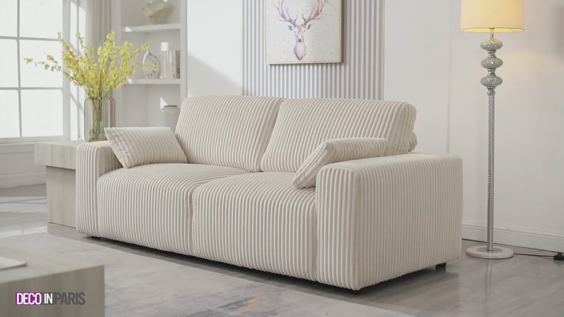 Verleihen Sie Ihrem Wohnzimmer mit diesem 3-Sitzer-Sofa INAM aus dickem, beigem Cord einen Hauch von Raffinesse.