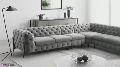 CARMEN, wendbares, getuftetes Chesterfield-Ecksofa aus grauem Samt
