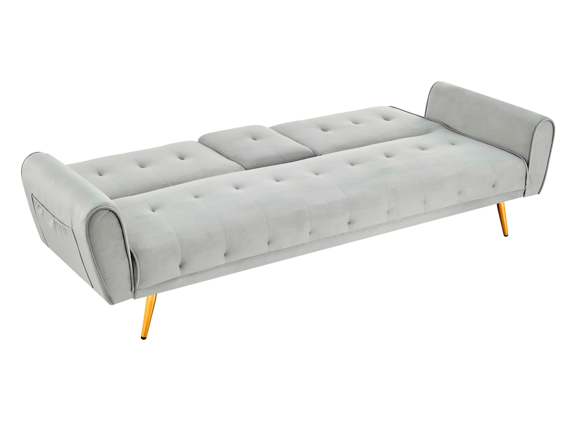 LIMA hellgraues Samtschlafsofa mit Getränkehalter