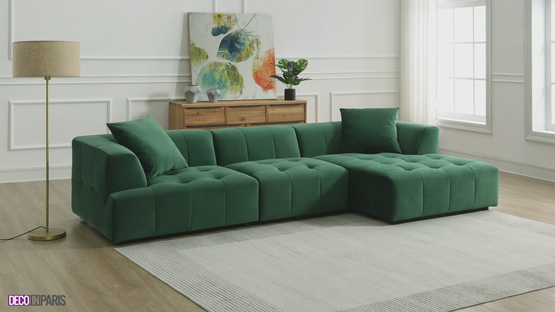 KELIA Ecksofa aus grünem Samt mit Chaiselongue - rechtwinklig