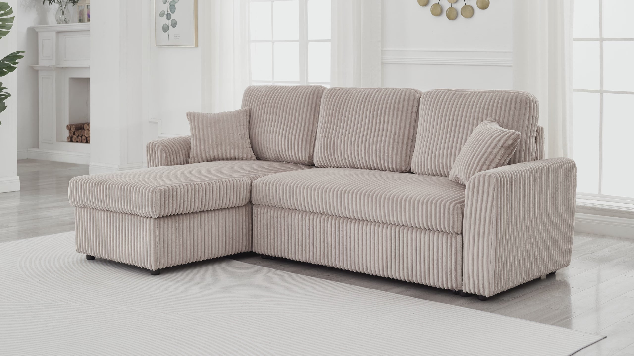 ADRYEN umwandelbares und wendbares Ecksofa mit Stauraum aus dickem Taupe-Cord