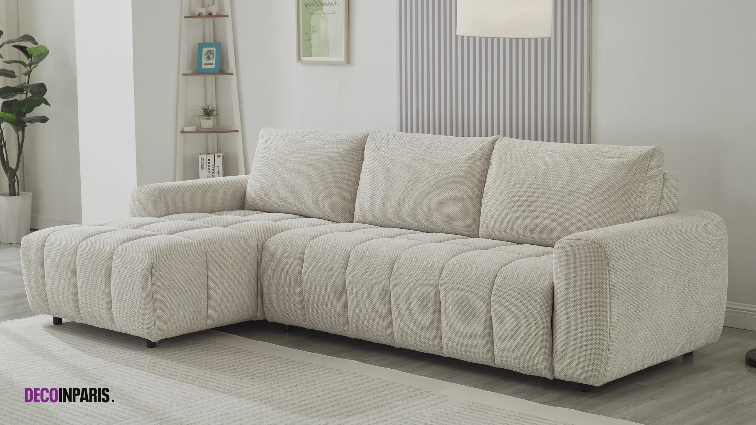 Canapé d'angle convertible ouverture express en tissu beige AGATHE - Angle gauche