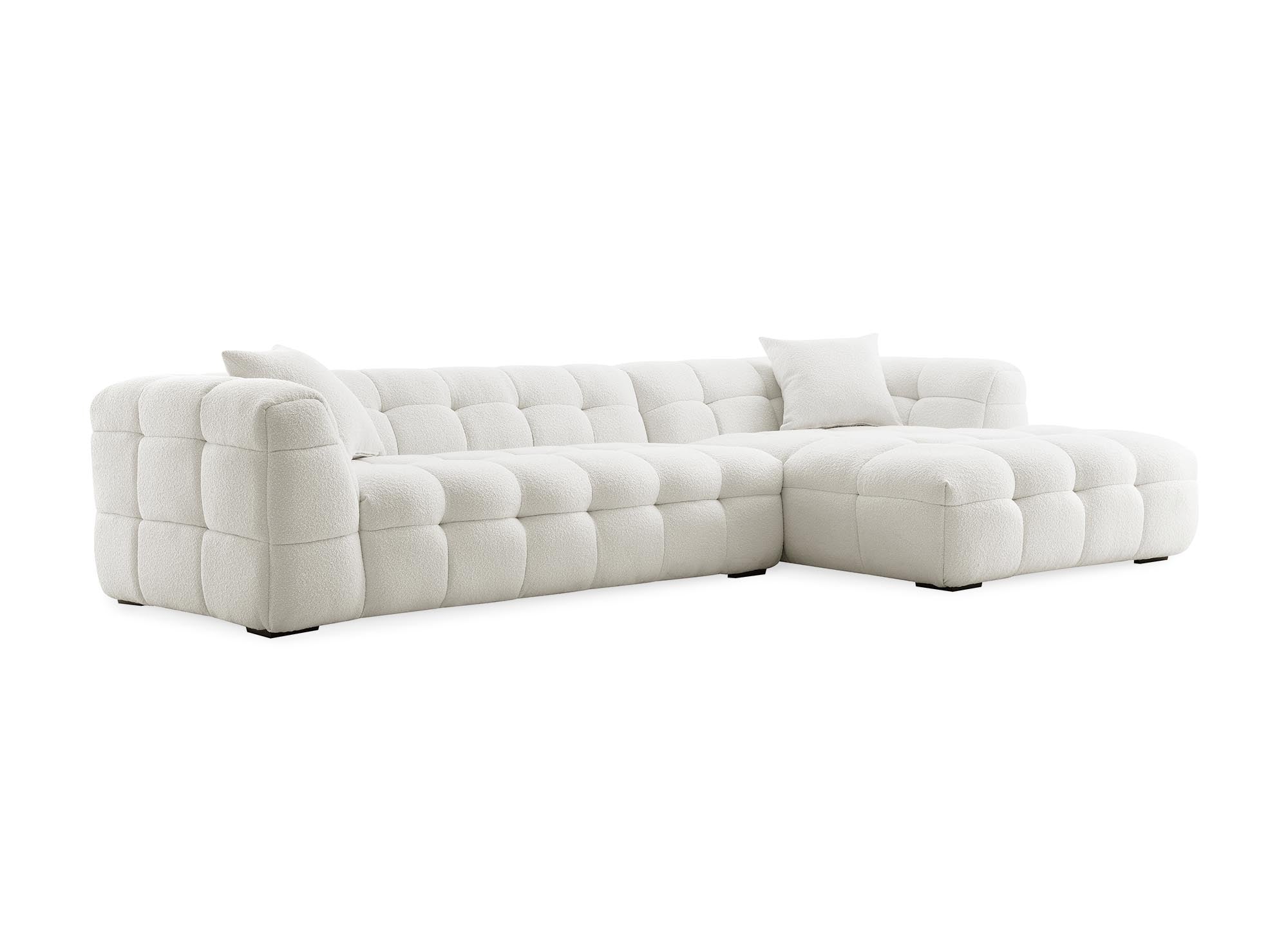 Ecksofa BELLA in ecruweißem Schaffell-Effekt - rechtwinklig