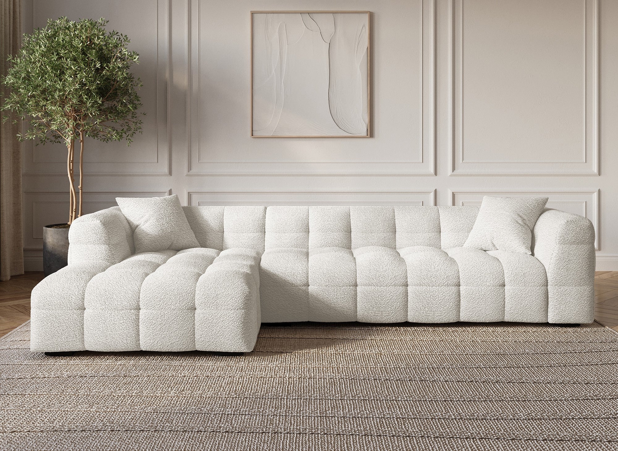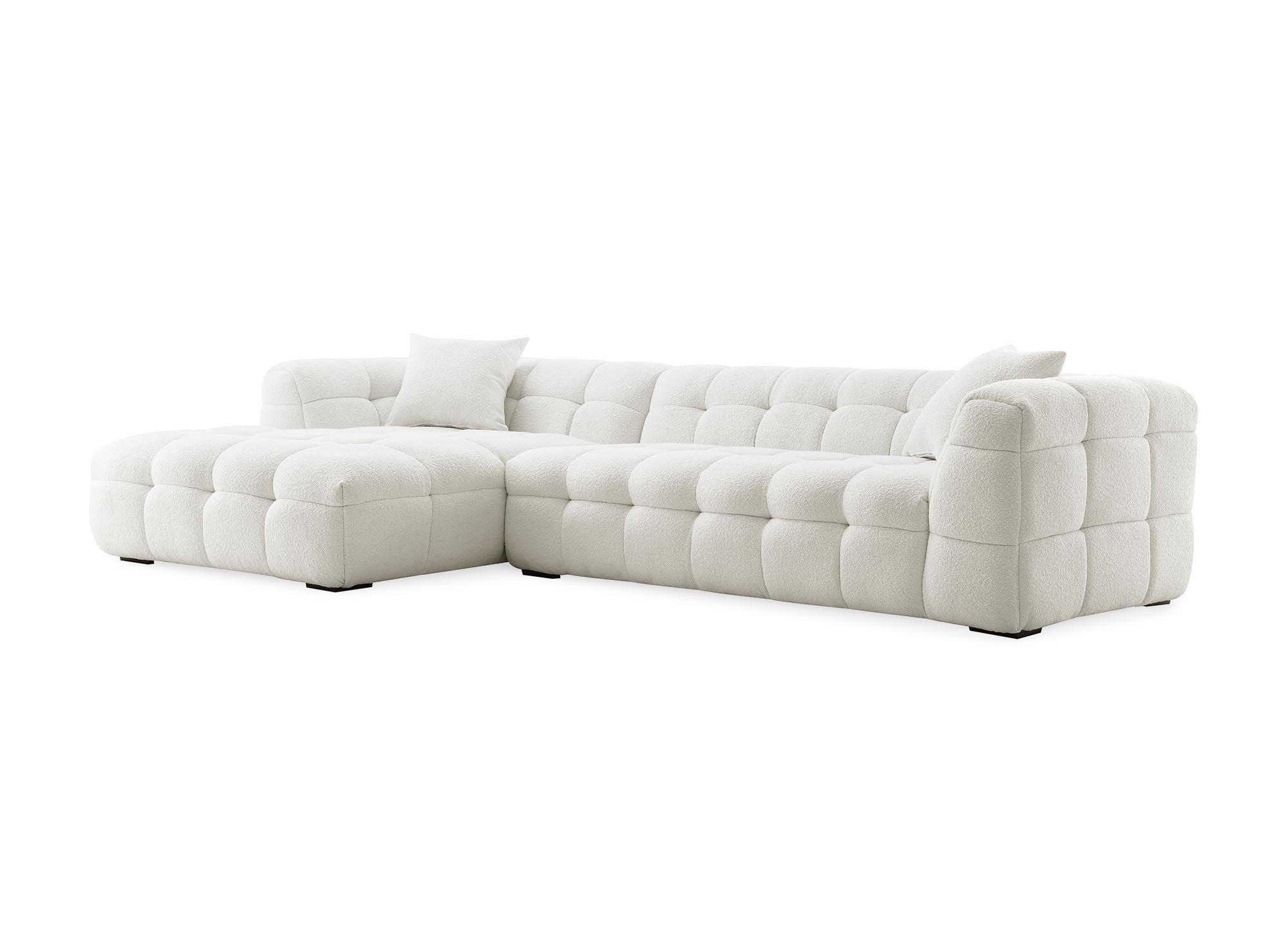 Ecksofa BELLA in ecruweißem Schaffell-Effekt - Linke Ecke