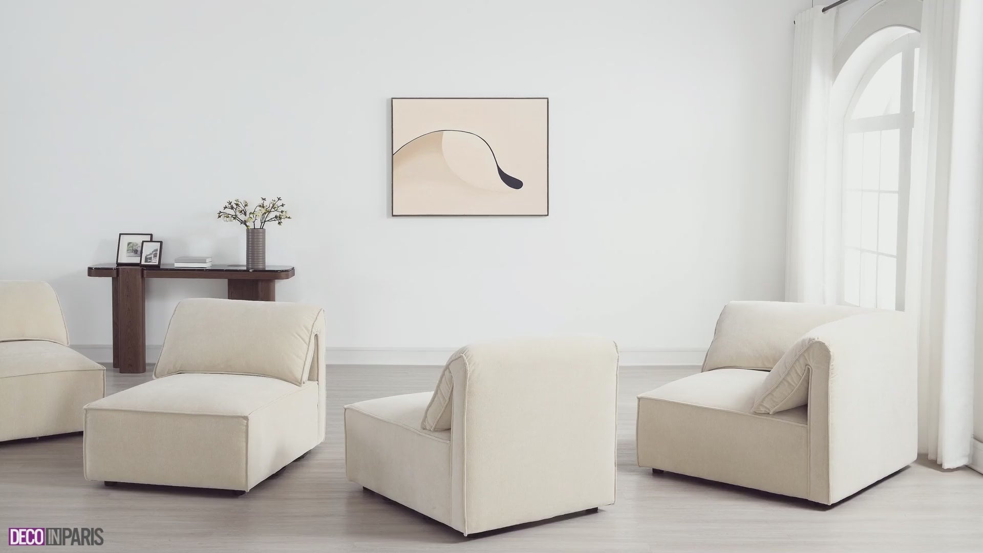 Gestalten Sie Ihren individuellen Wohnraum mit diesem großen, modularen und wendbaren Ecksofa HARINA aus beigem Samt . Das wendbare Design passt sich problemlos Ihrer Einrichtung an, egal ob Sie eine linke oder rechte Ecke bevorzugen.
