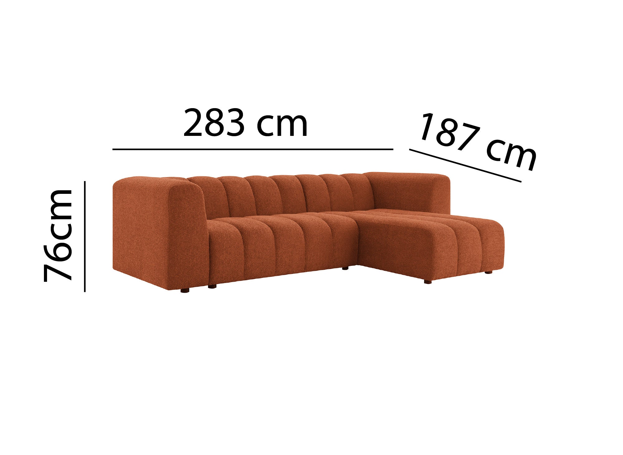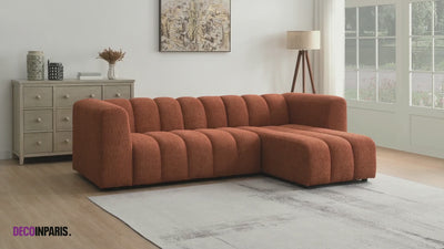 Zusammenfassend lässt sich sagen, dass das wendbare Ecksofa AELIS aus Terrakotta-Bouclé-Stoff die ideale Wahl für alle ist, die nach Möbeln suchen, die sowohl trendig als auch bequem sind.