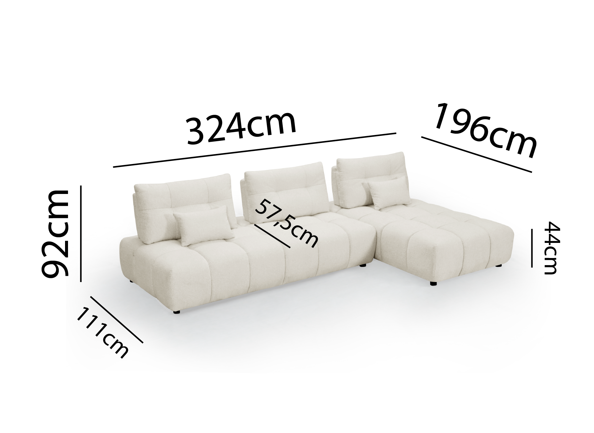 Das bequeme, geräumige und elegante Ecksofa ALANA ist die ideale Wahl, um in Ihrem Wohnzimmer einen gemütlichen und einladenden Raum zu schaffen.