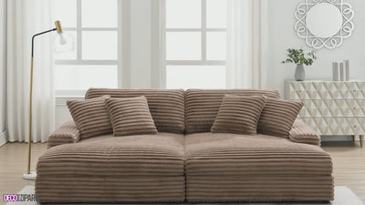Entdecken Sie das 2-Sitzer-Chaiselongue-Sofa DAHO in weicher taupebrauner Rippung , eine ideale Lösung für kleine Räume.