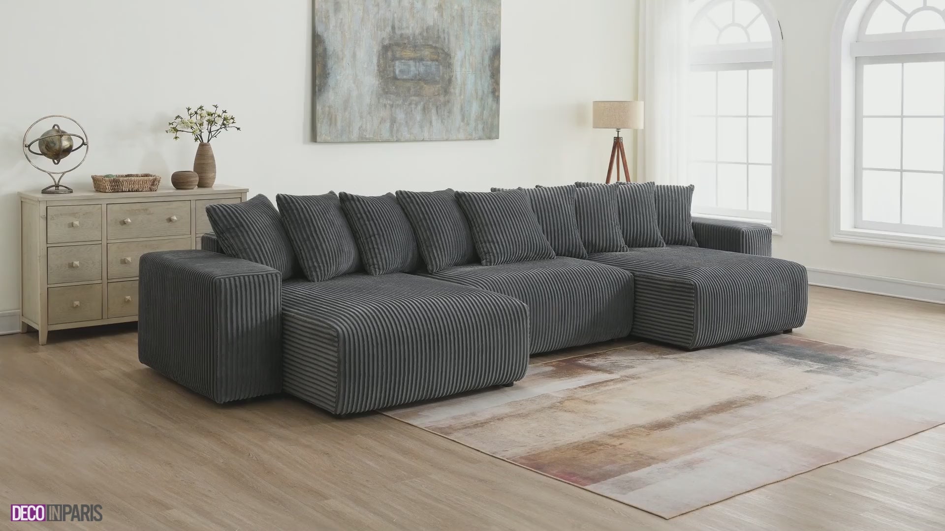 Dieses Panoramasofa passt sich dank seiner umkehrbaren Konfiguration Ihrem Interieur an und ermöglicht es Ihnen, die Anordnung der Chaiselongues nach Ihren Wünschen oder den Gegebenheiten Ihres Raumes zu wählen. Das Panoramasofa NOELIA vereint Design, Komfort und Funktionalität und wird zum Mittelpunkt