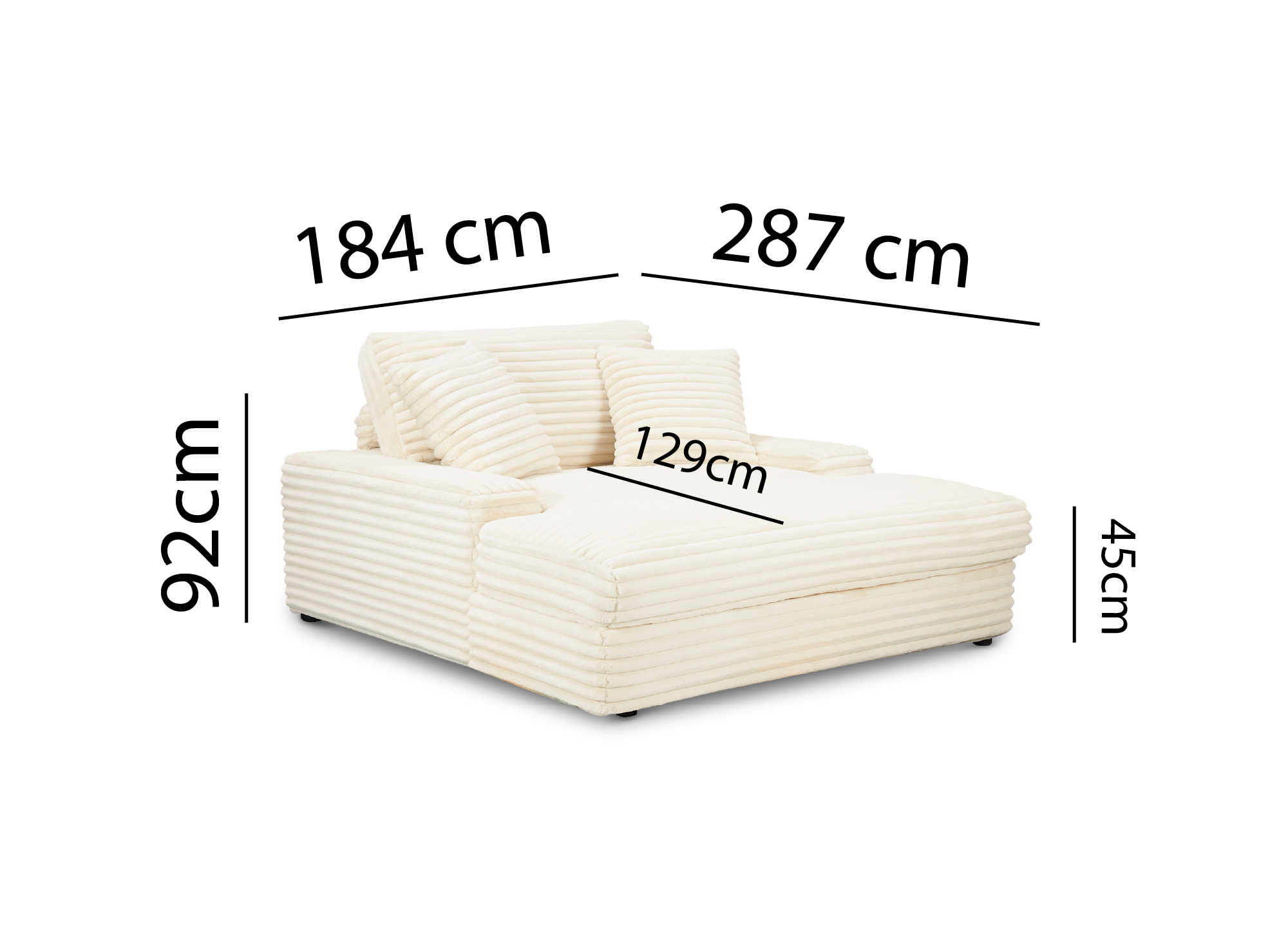 Die Chaiselongue DAHO XL besticht durch ihr kompaktes und elegantes Design und ist ideal, um kleine Räume optimal zu nutzen, ohne auf Stil zu verzichten. Der dicke, weiche Cord verleiht ihr einen Hauch von Eleganz und Weichheit.