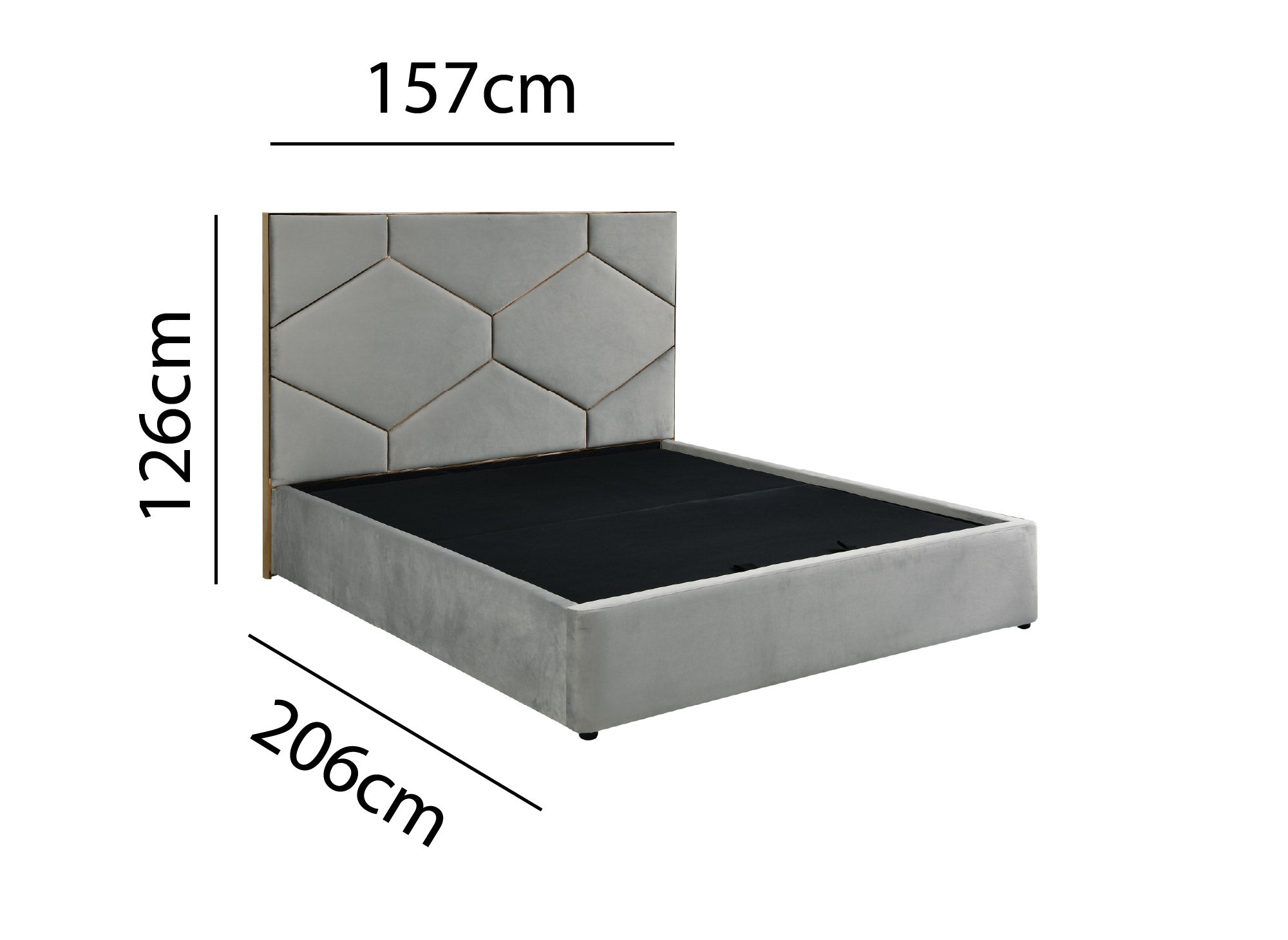 LARA graues Samtbett mit Stauraum und Designer-Kopfteil 140 x 190 cm