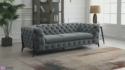 CARMEN 3-Sitzer-Sofa, feststehend, Chesterfield-Stil, gesteppt, grauer Samt