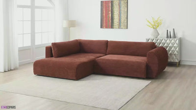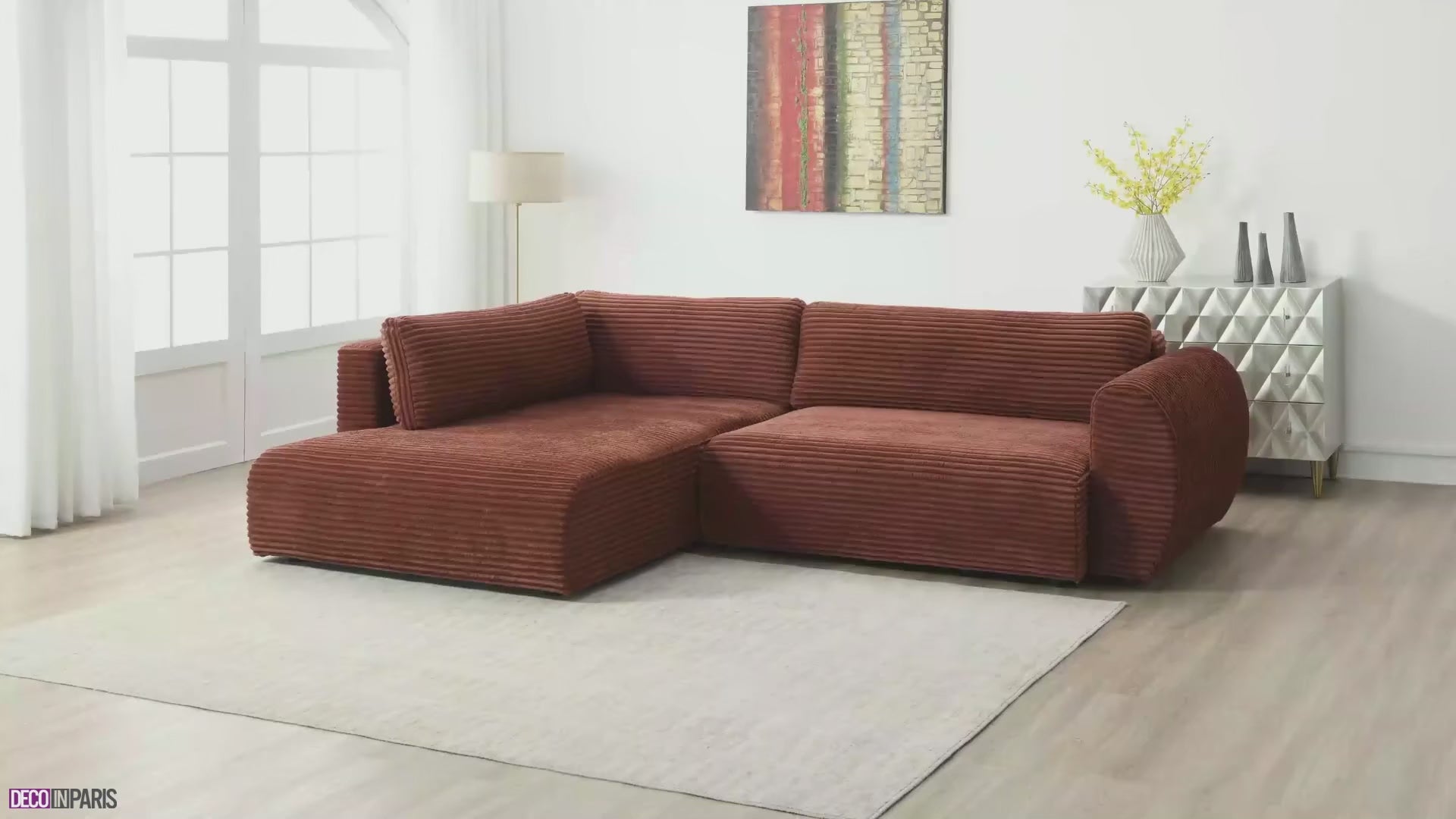 Möchten Sie Ihrem Zuhause eine gemütliche und zugleich elegante Atmosphäre verleihen? Verlieben Sie sich in das umbaubare Ecksofa TILDA mit Chaiselongue aus dickem Terrakotta-Cord.
